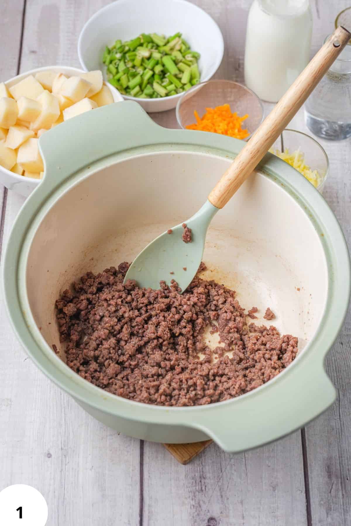Step 1: In a pot, cook beef in butter/oil until browned (Image 1).