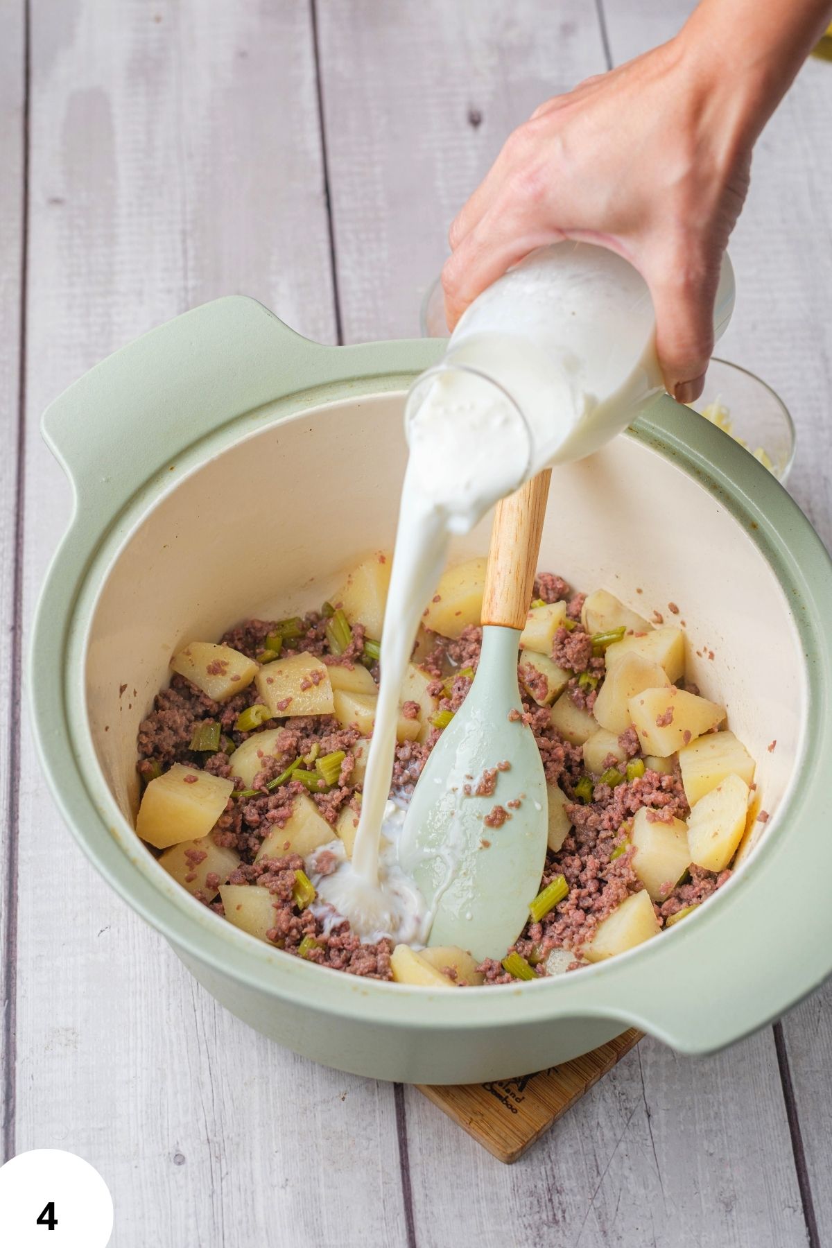 Yes, hamburger and potato soup is a great make-ahead option. For the best texture, cook the soup through the potato-simmer step, then cool and refrigerate. When you're ready to serve, reheat gently and stir in the heavy cream and cheese at the end. Adding the dairy later keeps it creamy and prevents the cheese from getting grainy.