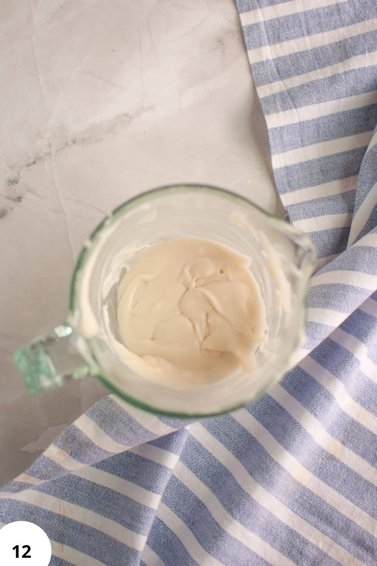 Step 4: In a separate bowl, whisk together the egg, heavy cream, vanilla extract, and sourdough discard until smooth (Image 4).