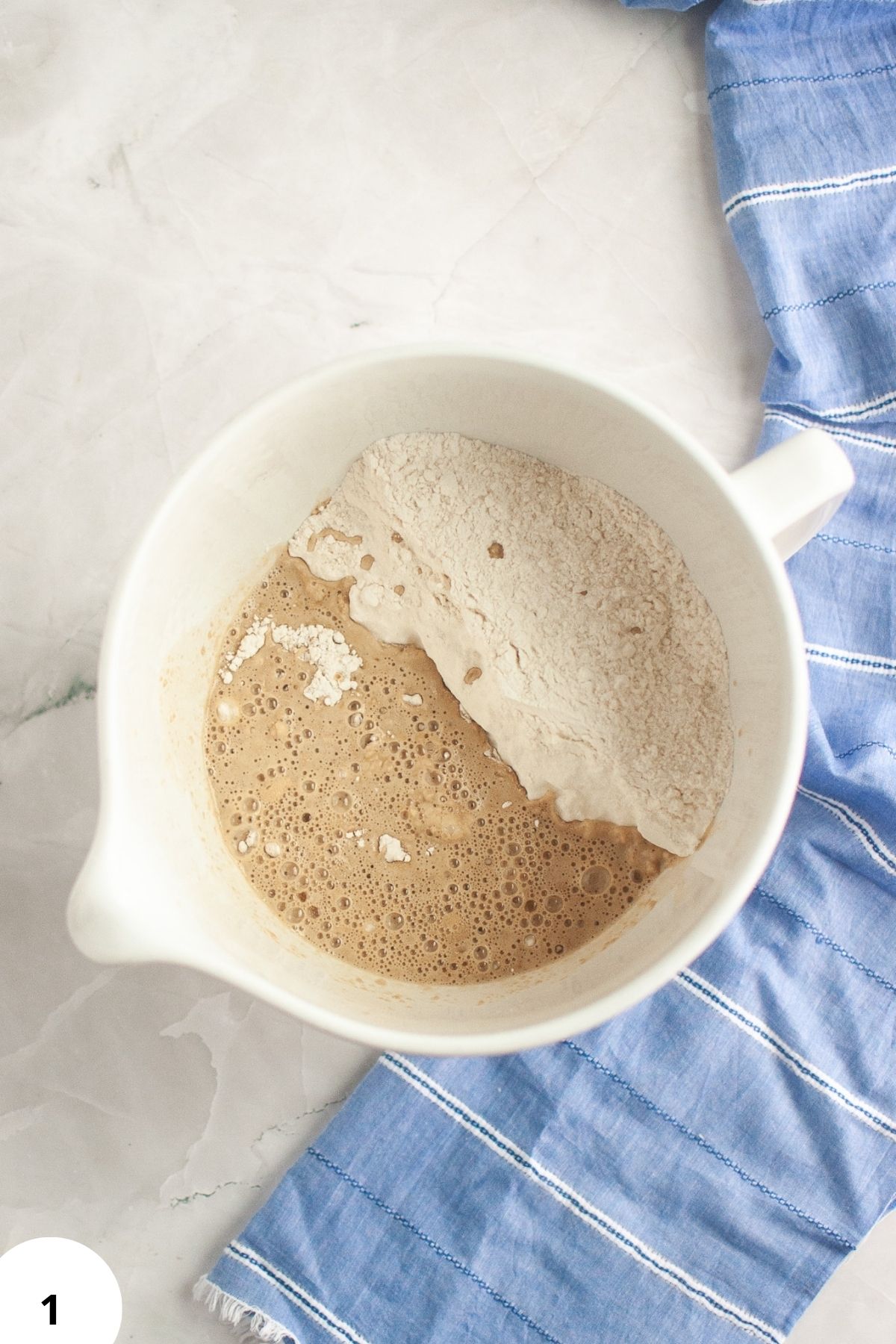 Step 1: In a mixing bowl, combine the sifted flour, sourdough starter, and dark beer (Image 1).